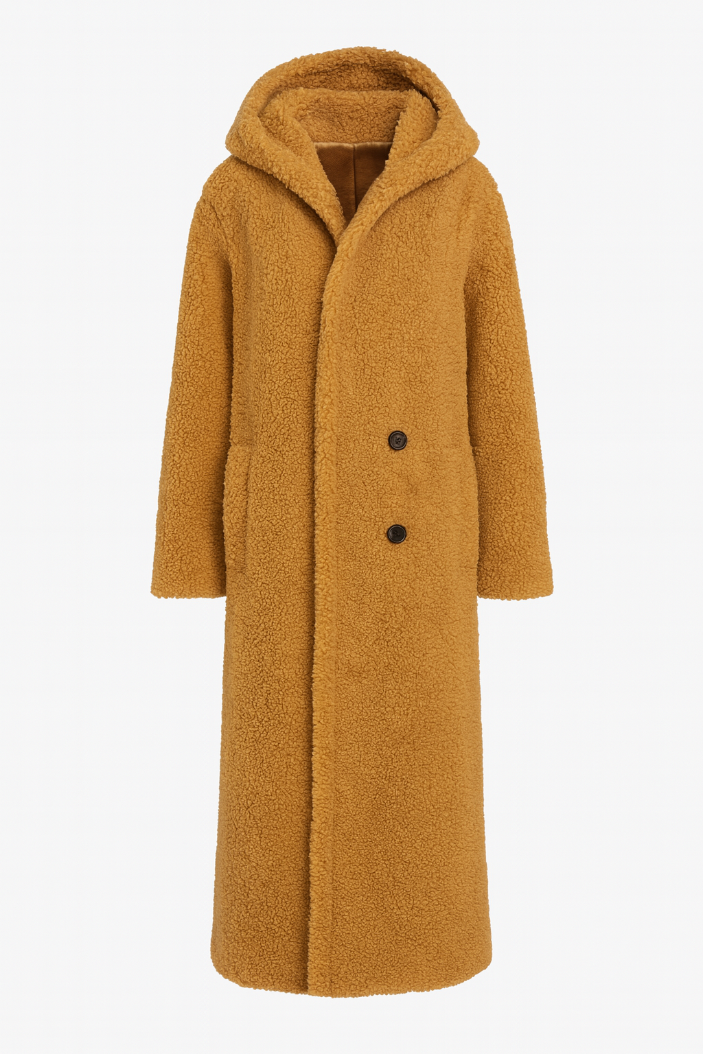 Damski Płaszcz z Futerkiem Teddy | Długi Fason z Kapturem | Ciepły i Stylowy na Zimę
