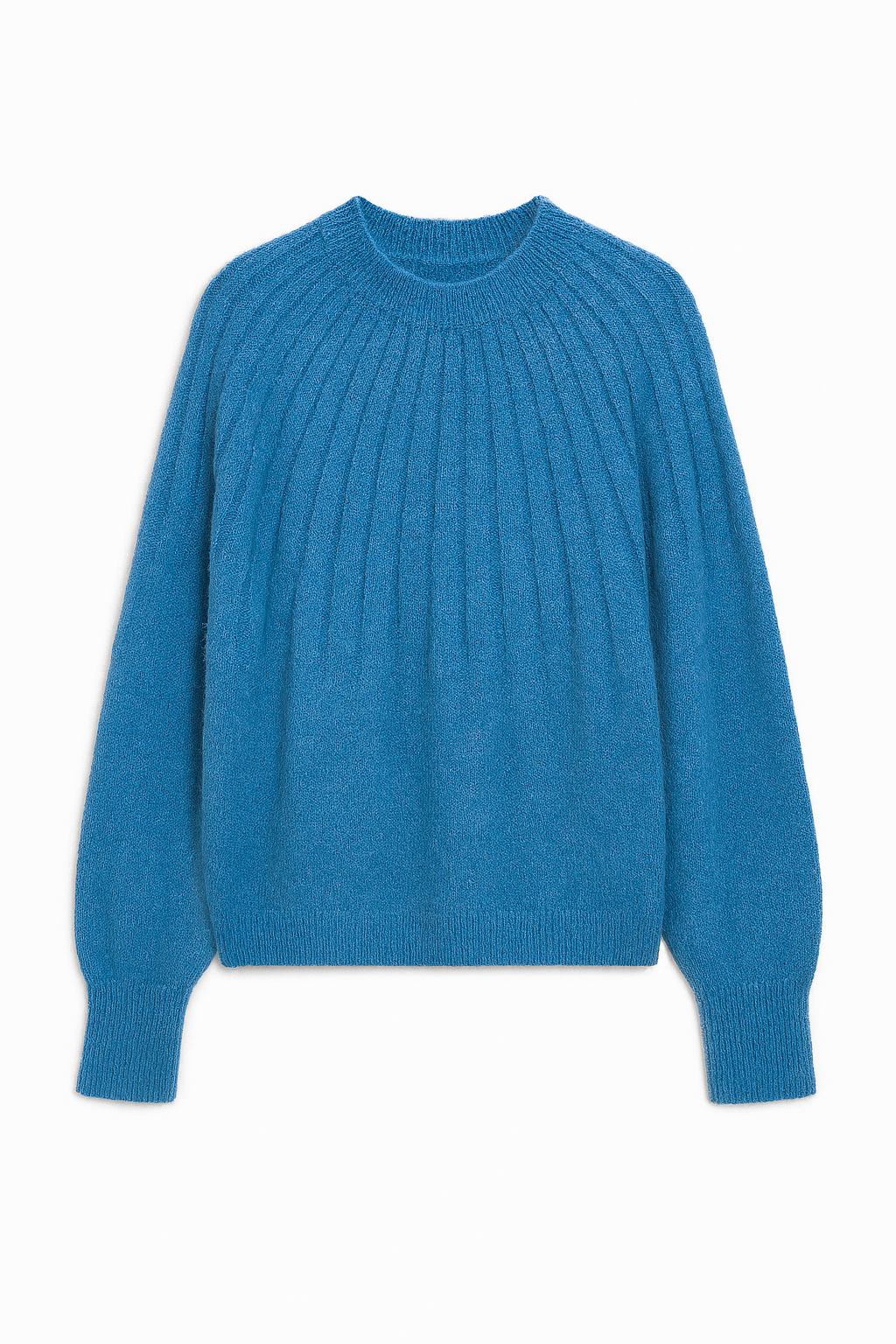 Damski Sweter z Włókna Puszystego | Delikatny Prążkowany Splot | Miękka Faktura | Luźny Krój