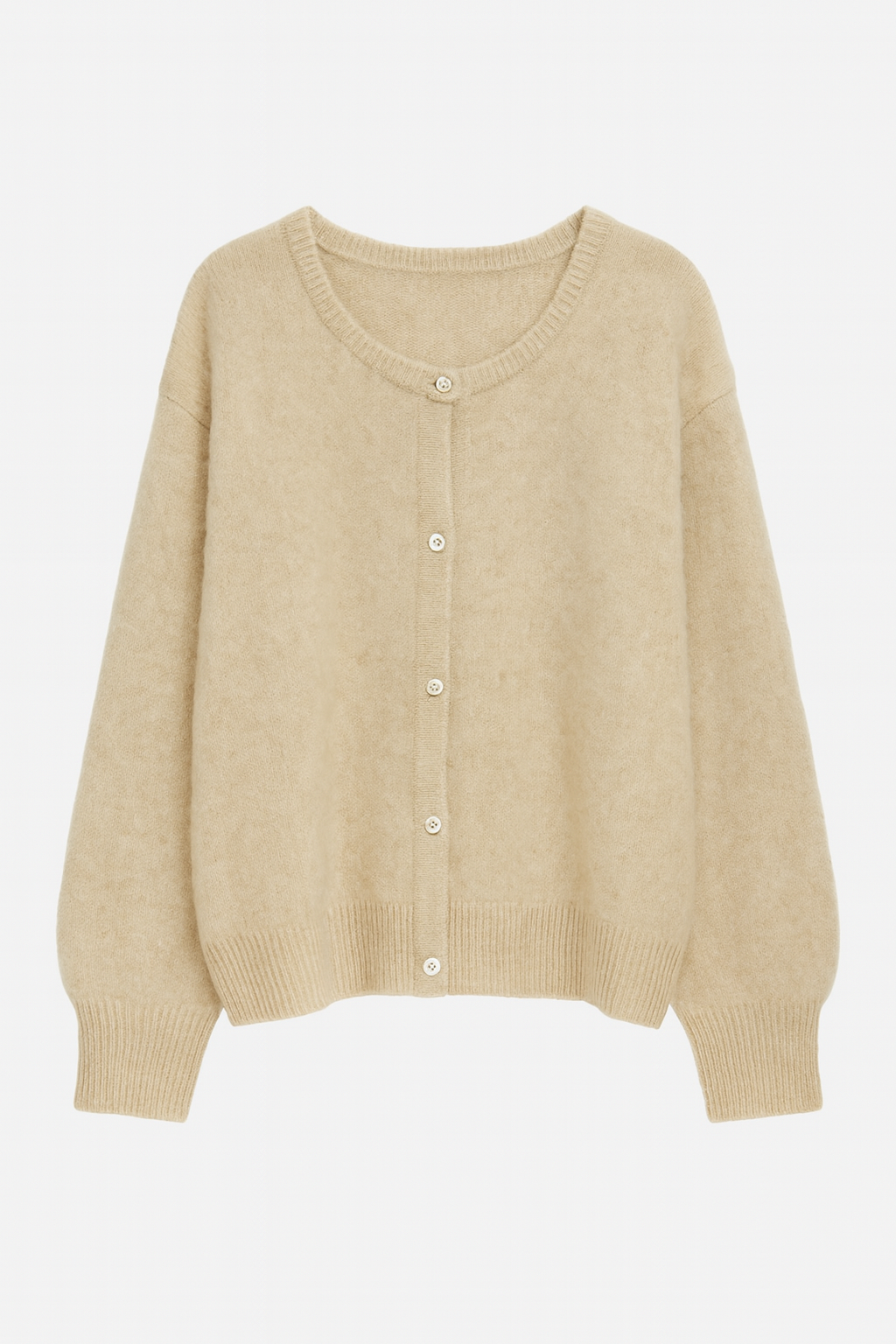 Marzysz o swetrze, który łączy miękkość z codzienną elegancją? Ten luźny kardigan z długimi rękawami i klasycznym zapięciem na guziki to idealny wybór na chłodniejsze dni. Lekka, puszysta faktura materiału nadaje mu przytulny charakter, a uniwersalny krój pozwala na łatwe dopasowanie do różnych stylizacji.