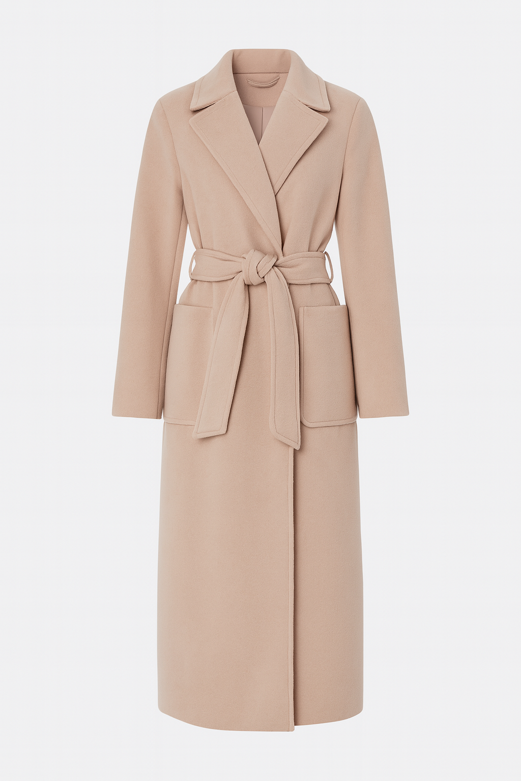 Płaszcz Wiązany w Talii | Miękki Materiał z Wełną | Długość Midi | Minimalistyczna Forma