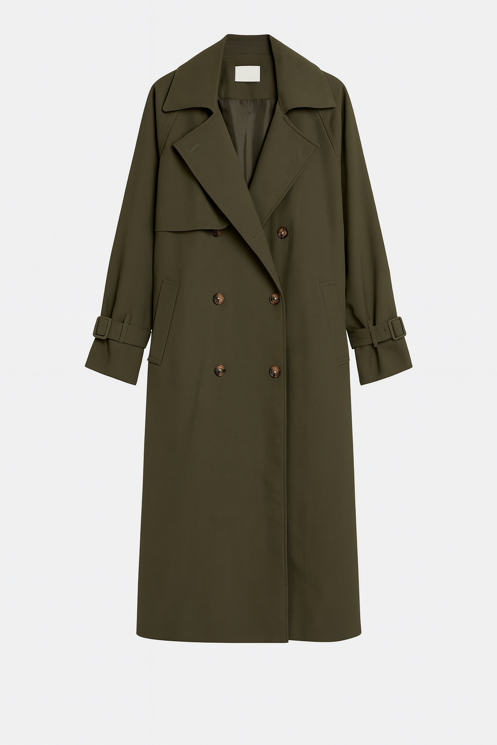• Krój: Klasyczny trencz dwurzędowy z paskiem