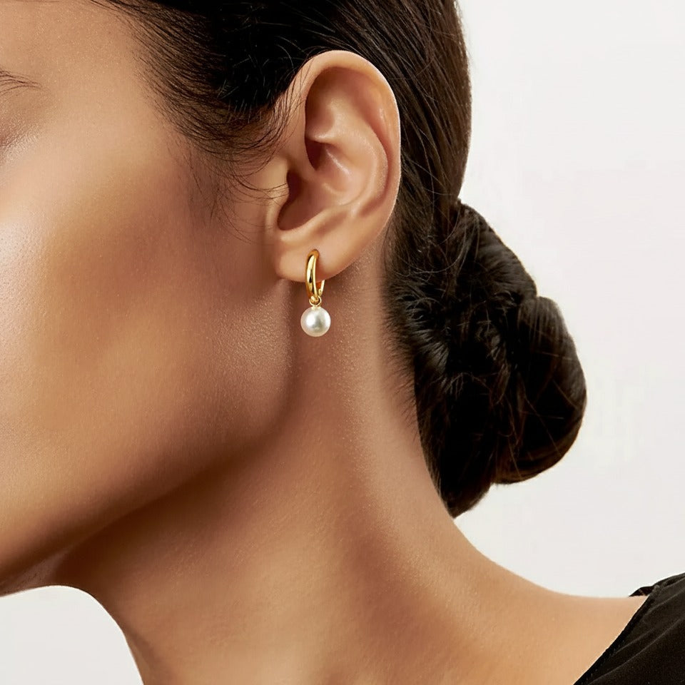 Złote kolczyki z małymi perłami
